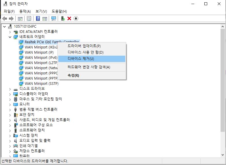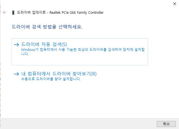네트워크 어뎁터에서 드라이버 업데이트를 먼저 실행시켜 확인 합니다