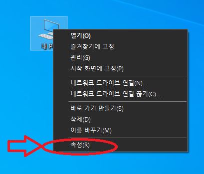 바탕화면에 내 컴퓨터에서 우클릭하시게 되면 위처 럼 화면에 표시됩니다
