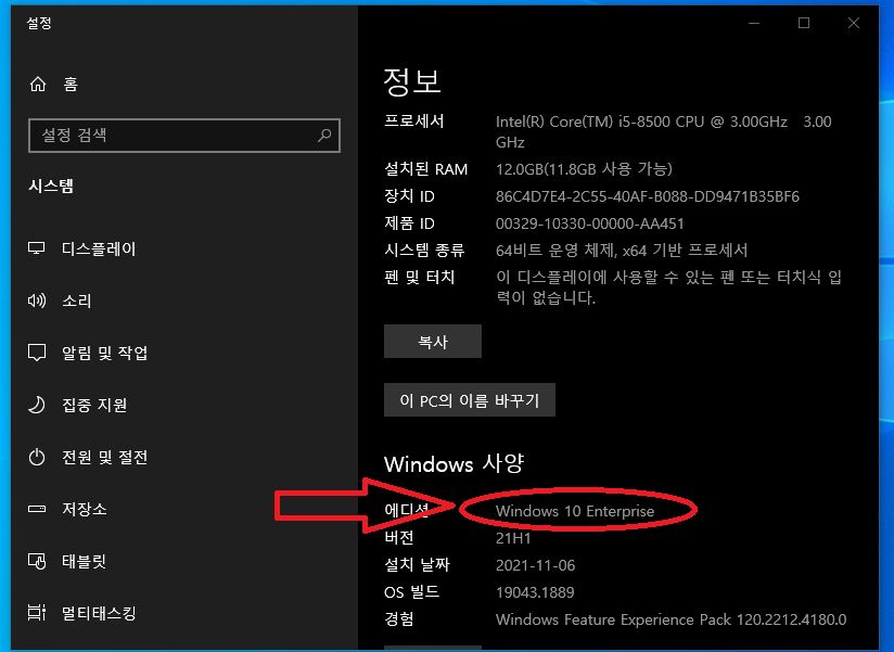그 외는 서버용이 표시됩니다 혹시 윈도우 버전을 정확히 모르신다면 아래 그림을 참고하세요 ~