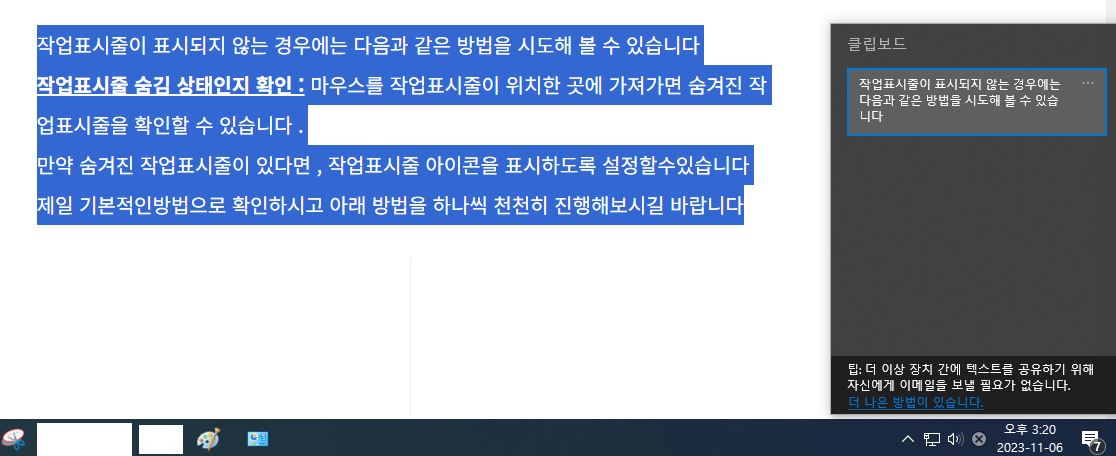 아래는 Windows에서 클립보드를 사용하는 방법에 대한 안내입니다.
