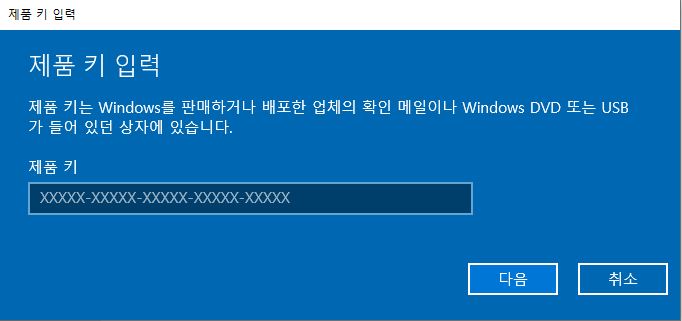 윈도우 버전 별 KMS 제품키를 입력하시면 됩니다 대신 이 버전 키는 수동으로만 가능합니다