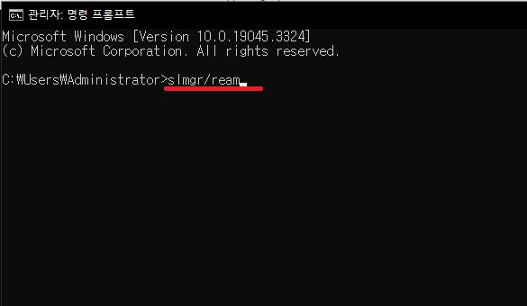 slmgr/ream 을 입력하고 엔터(키보드 Enter)