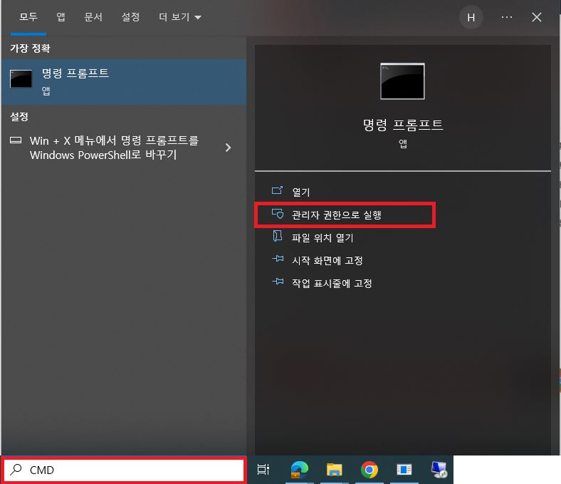 cmd - 관리자 권한으로 실행 클릭합니다