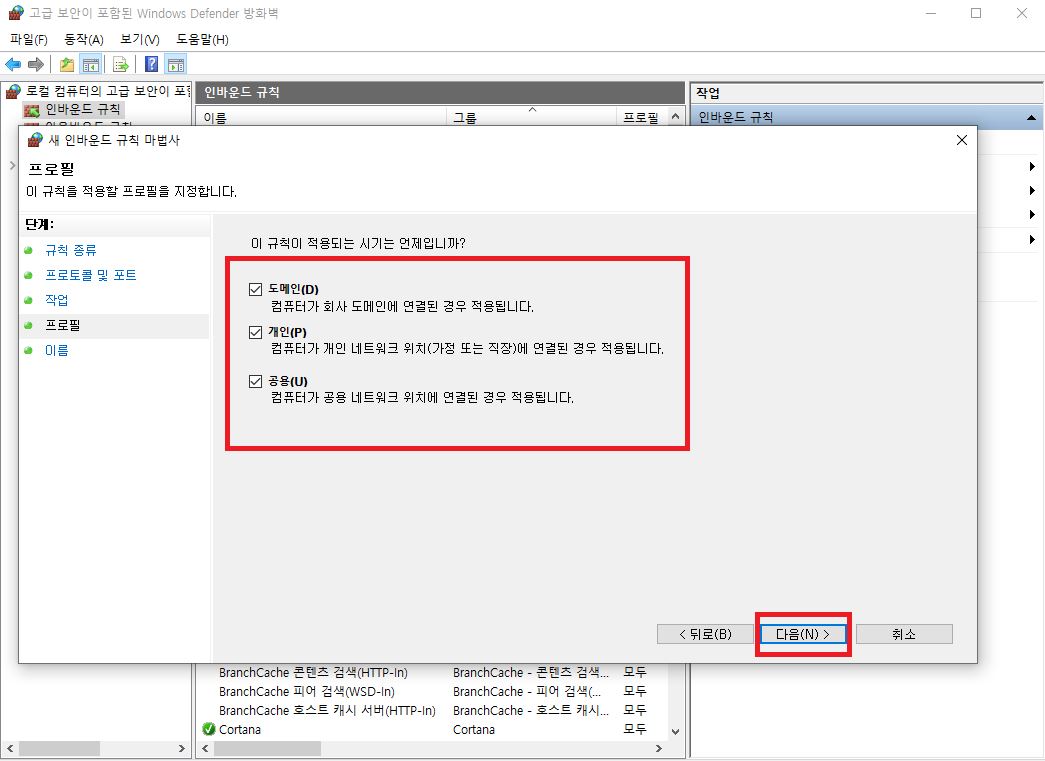 Windows 방화벽에서 인바운드 규칙 설정하기 (네트워크 포트 열기 방법)