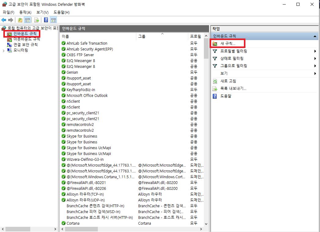 10. 새 인바운드 규칙 마법사를통해 새로운 규칙이 추가된 것을 확인할 수 있습니다