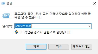 1) 단축키 (win+r) "실행" 창에 services.msc를 입력하고 확인을 클릭합니다